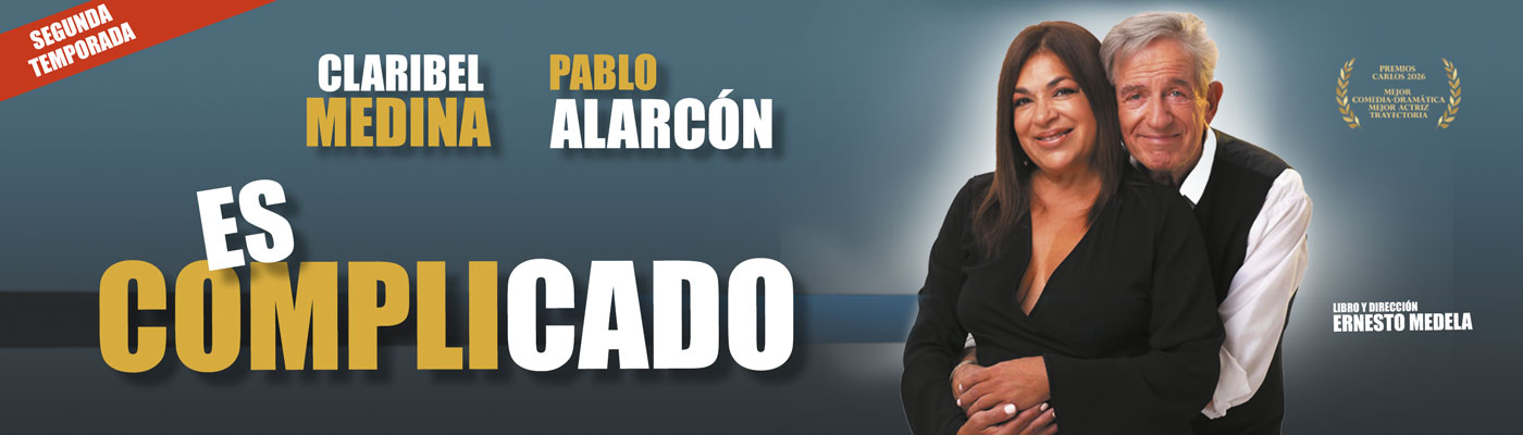 La querida dupla actoral, Pablo Alarcón y Claribel Medina, vuelve a reunirse en escena, luego de una gran cantidad de años, con “Es Complicado”, un texto que también le dejará su lugar al humor y a la emoción.