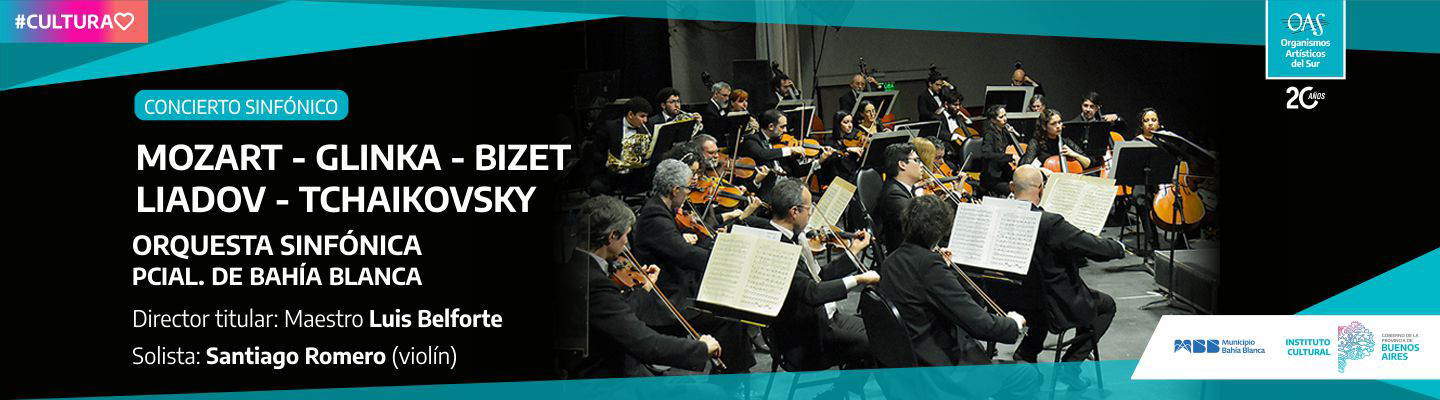 El concierto sinfónico será dirigido por el maestro Luis Belforte y participará como solista de violín el maestro Santiago Romero. El programa estará compuesto por las siguientes obras: “Concierto para Violín N° 5 en La mayor, K. 219” de Wolfgang Amadeus Mozart, la “Obertura de Ruslan y Ludmila” de Mijaíl Glinka, la “Suite N° 1 de Carmen” de Georges Bizet, “El Lago Encantado, op. 62”(poema sinfónico) de Anatoli Liadov y “Polonesa de Eugene Onegin” de Piotr Ilich Tchaikovsky.